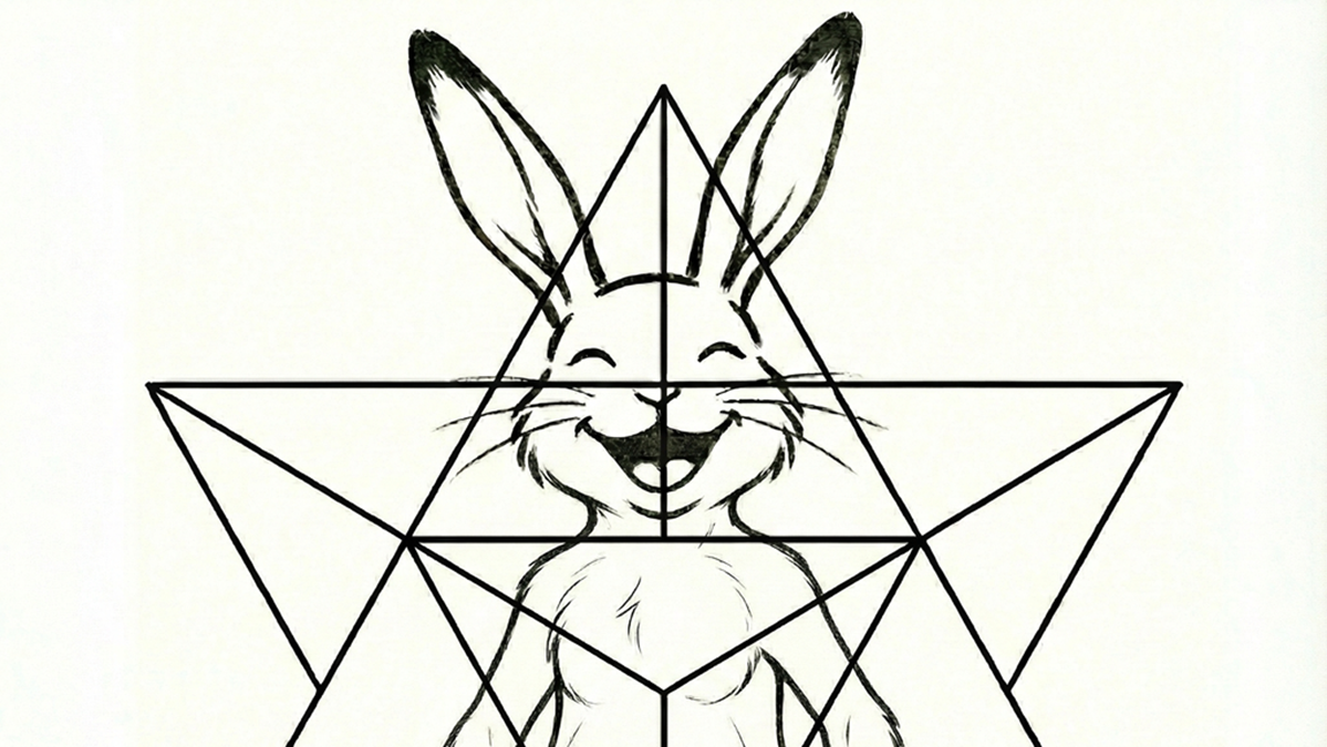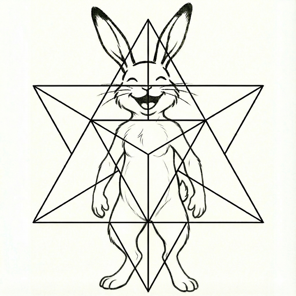 ちゃんと書けていないですが、兎のまわりにある星型立体8面体のエネルギーフィールドを回していく感じです。本当は、まだ続きがあるのですが、まずはこの8面体を回さないと始まらないようです。